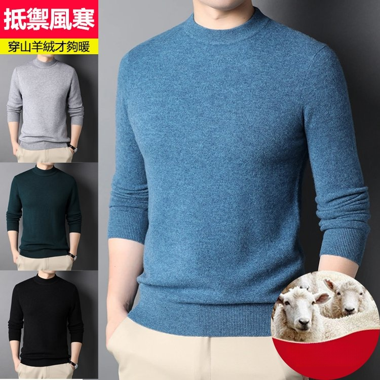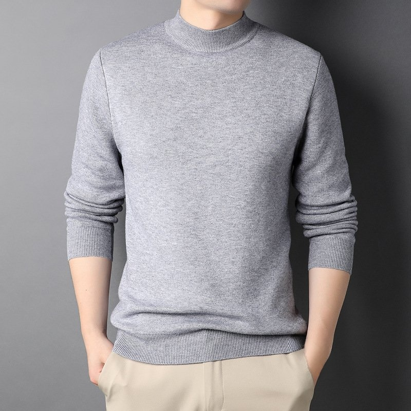 純色半高領羊絨男士針織衫